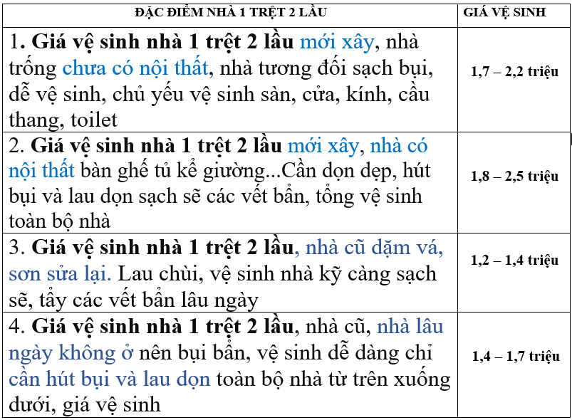 Giá vệ sinh công nghiệp nhà 1 trệt 2 lầu