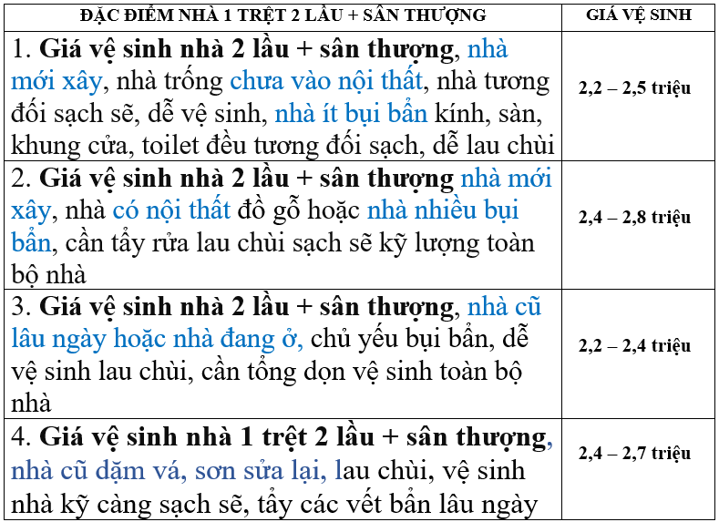 Giá vệ sinh công nghiệp nhà 2 lầu + sân thượng