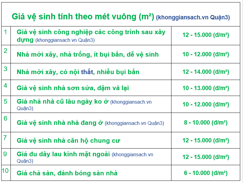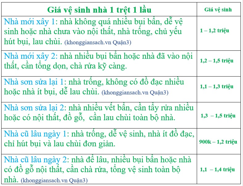 Giá dịch vụ vệ sinh nhà ở Q.3 được tính ntn?