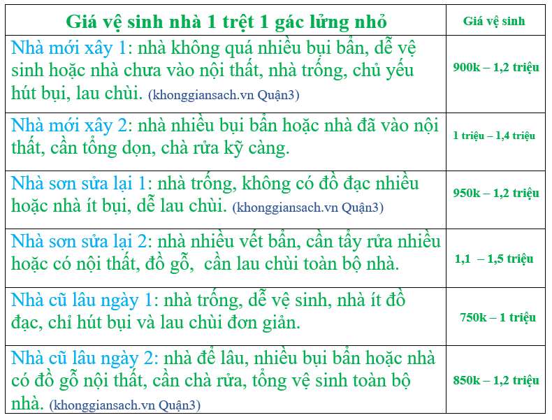Giá vệ sinh nhà 1 trệt 1 lầu Quận 3