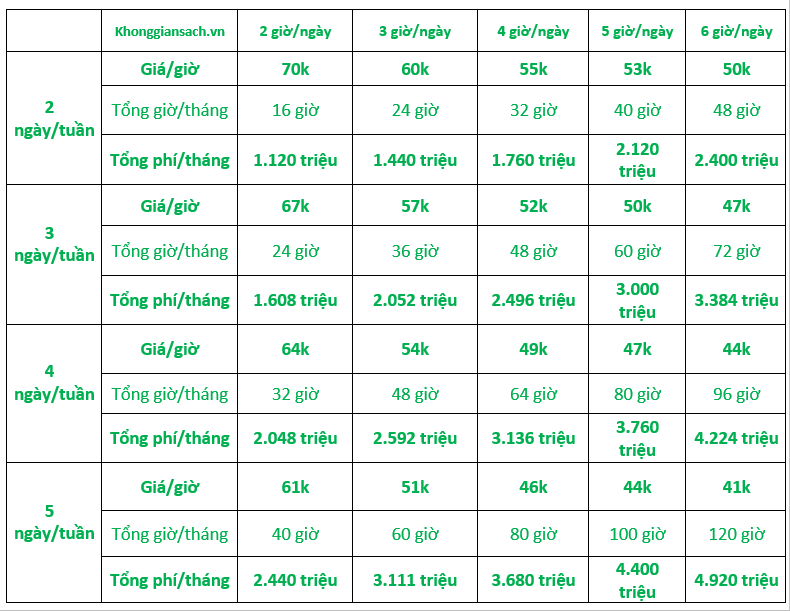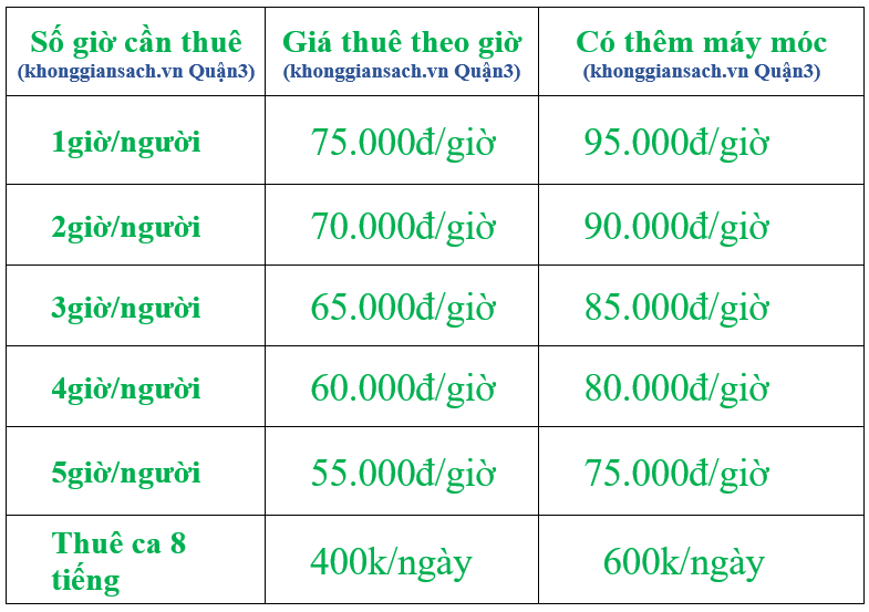 Dựa vào nhu cầu của từng khách hàng, Khônggiansạch đã xây dựng bảng giá dịch vụ cụ thể và chi tiết nhất cho từng gói dịch vụ để khách hàng tại Quận 3 tham khảo, xem xét và lựa chọn gói dịch vụ phù hợp. Có 3 cách tính giá dịch vụ cơ bản nhất Không Gian Sạch đang áp dụng như sau: