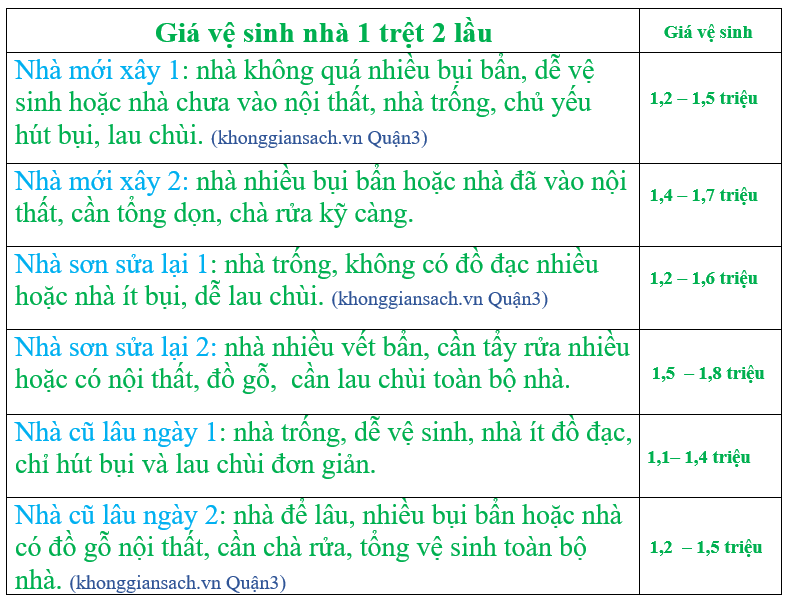 Bảng giá vệ sinh nhà ở Quận 3 mới nhất