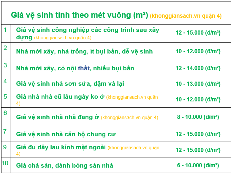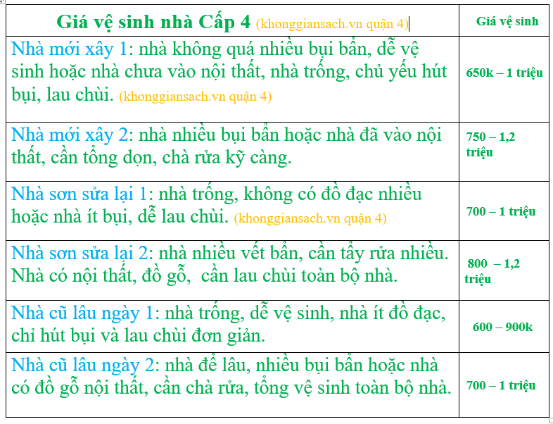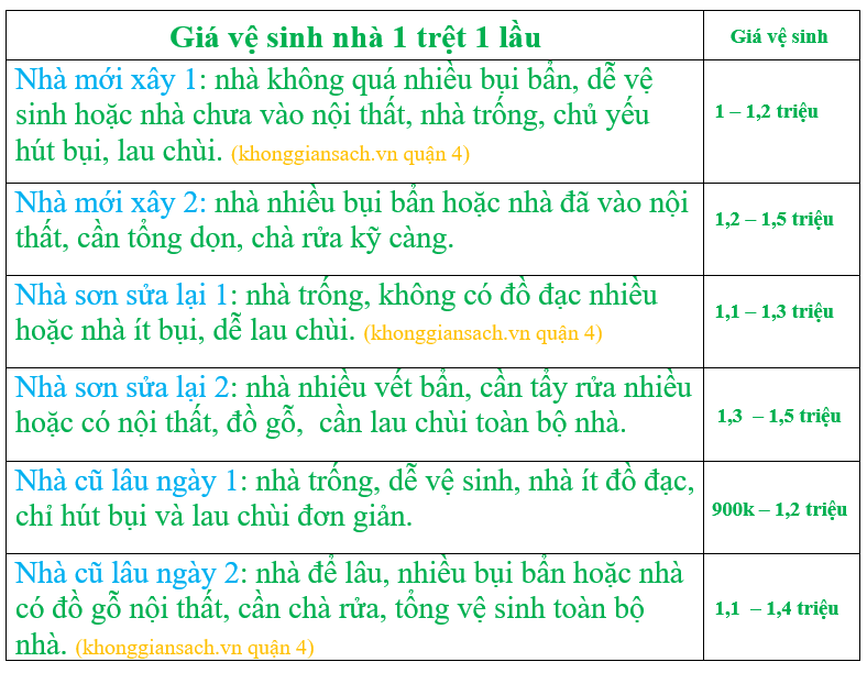 Giá dịch vụ vệ sinh nhà ở Q.4 được tính ntn ?