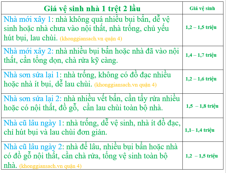 - Tính giá dịch vụ vệ sinh nhà trọn gói
